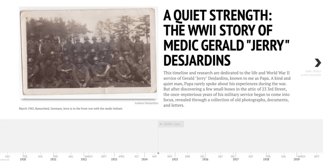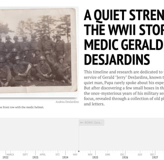 This website and project are dedicated to the life and military service of Gerald DesJardins, beloved husband, father, and grandfather. Explore the photos, documents, and letters that led to the discovery of his remarkable service as a medic in World War II.